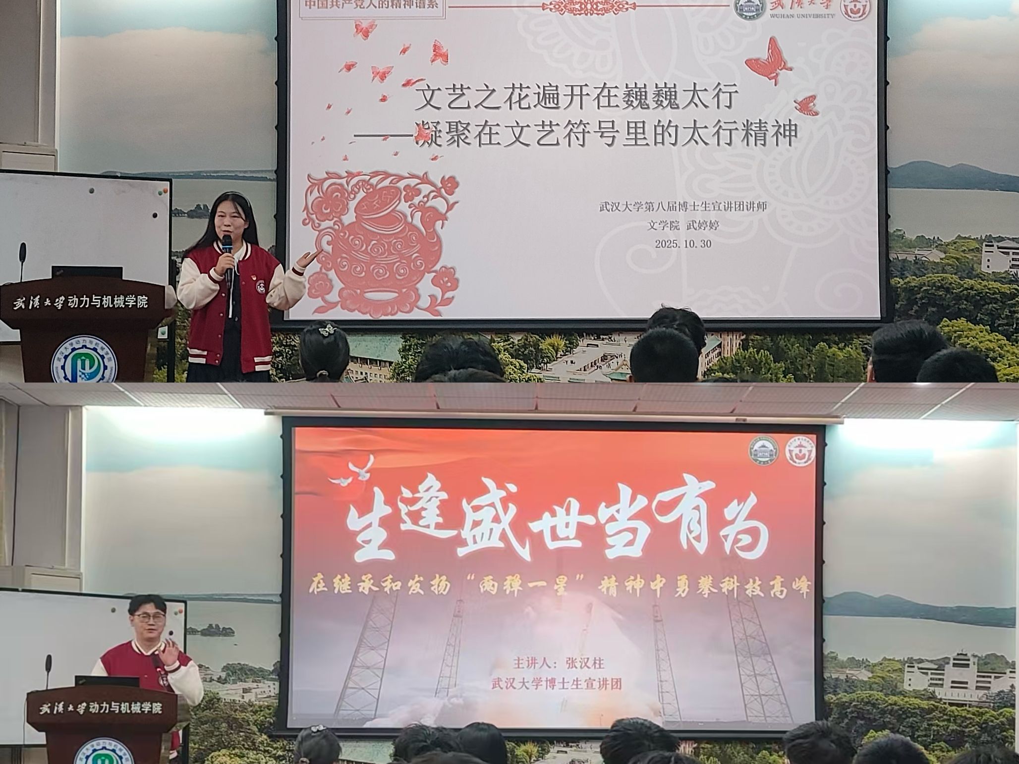 10月30日下午,首场线下辅导在学院报告厅举行。两位校博士生宣讲团成员受邀来院授课,文学院博士生武婷婷以凝聚在文艺符号里的太行精神为主题,带领学员们系统重温了伟大的中国共产党人精神谱系;威尼斯娱乐城 博士生张汉柱以继承和发扬“两弹一星”精神为号召,鼓励学员们努力学习先进理论和科学知识,生逢盛世勇攀科技高峰。