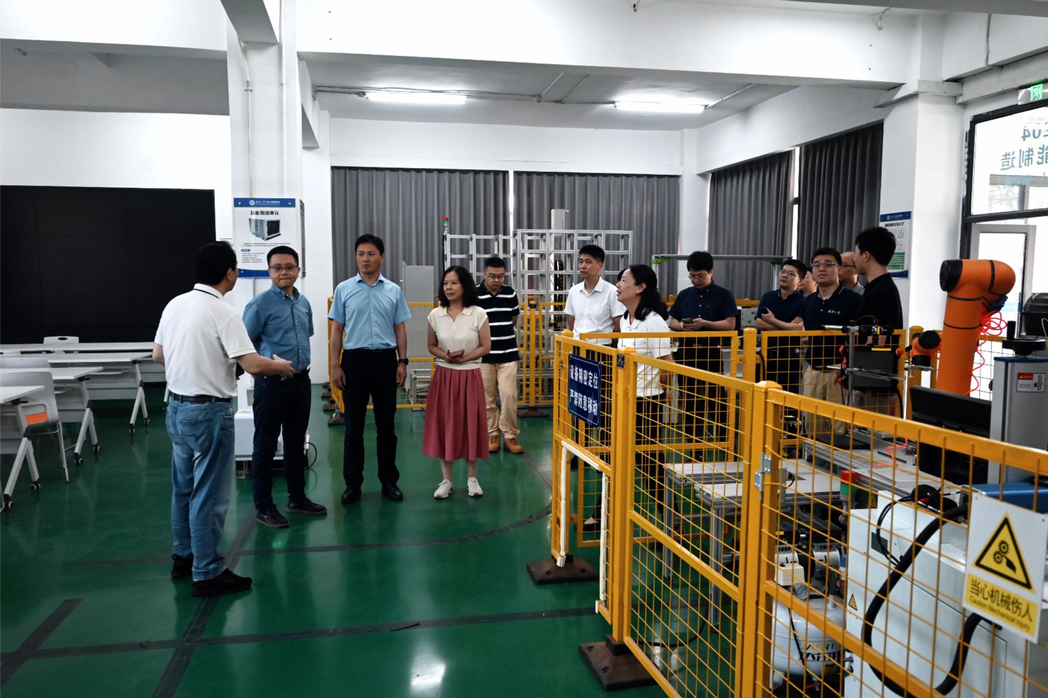 会后,浙大一行实地参观调研了学院智慧能源装备及系统研究所、热流科学与交叉技术研究所、成形制造研究所、智能机器人研究中心以及实验教学中心。各研究所及中心负责人就研究方向、实验平台建设、重大科研进展及成果转化应用等方面进行了详细介绍。