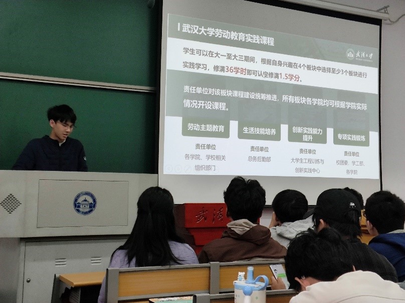 年级主席张俊超为同学们详细解答了劳动教育课程的构成部分及选课须知,助力同学们及时完成劳动教育课程的学习时长。