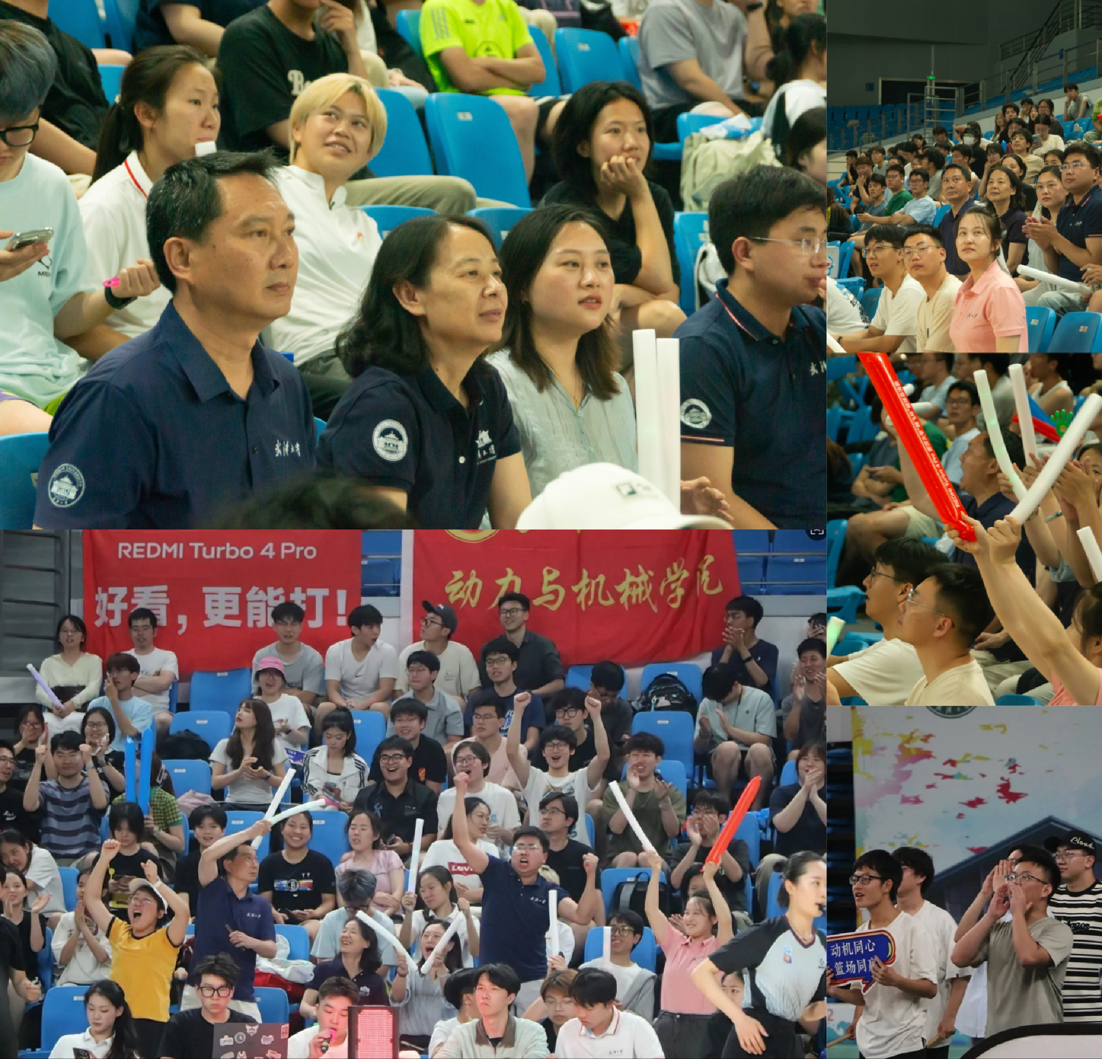 赛前,在院学生会工作人员的引导下,学院观众早早地在观众席就位,准备好应援物资后,静候比赛开始,为动机健儿们呐喊助威。